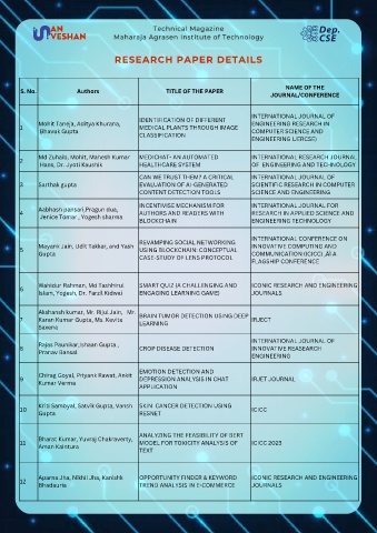 S. No. Authors TITLE OF THE PAPER
